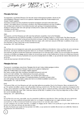 fibers contained in the gel, optimum durability is ensured even for problem nails (e.g. cracked nails). The fibers become Curing time : UV / LED 60-90 sec.