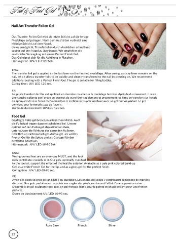 nail, which allows transfer foils to be quickly and cleanly transferred to the nail by pressing on. We recommend refill. The gels are flexible, and above all, very soft in application. No chipping or scratching,