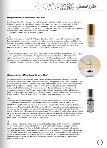 the volume technique, where the glue joins the ends of the lash fans itself. The glue dries in less than 1 second, sogenannte „Kriechen an der Wimper“ ist durch die optimale Konsistenz und Handhabung des