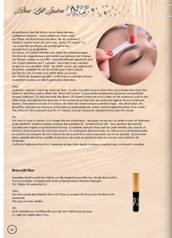 shaped eyebrows. On the one hand, the Brow Lift System tames the unruly hairs on the eyebrows, and on the Eine spezielle Lotion, um die zuvor in Form gebrachten Augenbrauen-Härchen zu fixieren und die Haarstruktur