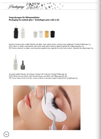Verpackungen für Wimpernkleber FR:Emballages pour produits de préparation, de finition et de soin des cils