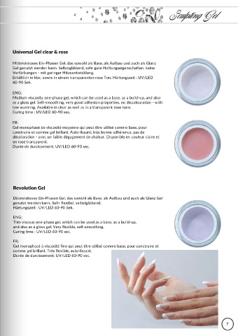 warming. Available in Clear as well as in a transparent Rose tone. Curing time : UV/LED 60-90 sec.